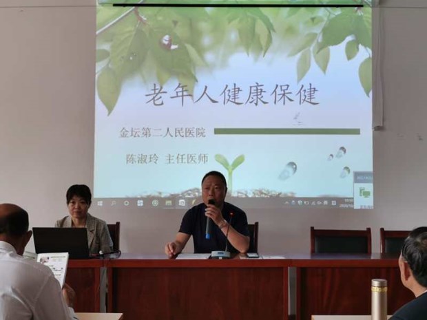 活动首先由基地讲解员带领所有成员参观了基地科普馆——生态大棚等,并从有机种植到稻鸭共作的生态养殖作了详细介绍,同时介绍了该基地的发展史及日后运作的相关设想。随后所有成员移步“全国十大美丽乡村”——仙姑村。该村曹习华主任带领大家先后参观了服务中心、电商馆、村史馆、党建馆和一号讲习所,从仙姑村史、茅山游击抗日史等方面追忆了过去,从土地改革、新农村建设等方面回顾了仙姑建设历程,从乡村振兴、新时代文明实践等方面展望了未来。所有成员兴趣盎然,啧啧称赞。最后所有成员聆听了由南京医科大学护理学院兼职教授、主任医师陈淑玲女士的专题讲座。陈主任从老年人健康状态、保健策略、保健常识、保健方法等方面指导老年人如何保健养生,同时从诸多病例分析了老年人可能致患的骨质疏松、三高、冠心病等的预防保健知识。