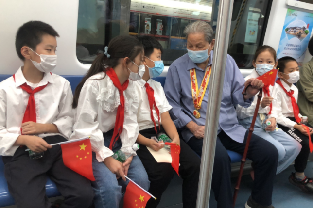九月桂黄风含香,中秋和国庆的前夕,9.29日上午,白云社区组织党员、居民以及白云小学学生陪同抗战老兵周汉宝同乘地铁,共同感受常州城市变化。