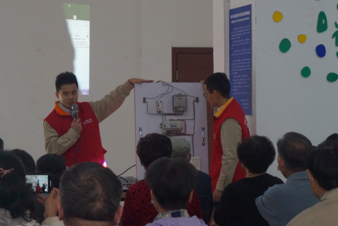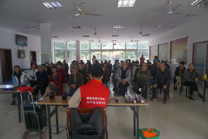 下午2点,来自国家电网江苏电力共产党员服务队的党员志愿者吴昊给到场的居民科普了关于用电安全的知识,通过给居民介绍智能电表的工作原理,告诉了大家如何安全用电、节约用电。期间,吴昊老师还通过有奖问答等小环节的设计充分调动大家的积极性,在场居民纷纷听得津津有味。