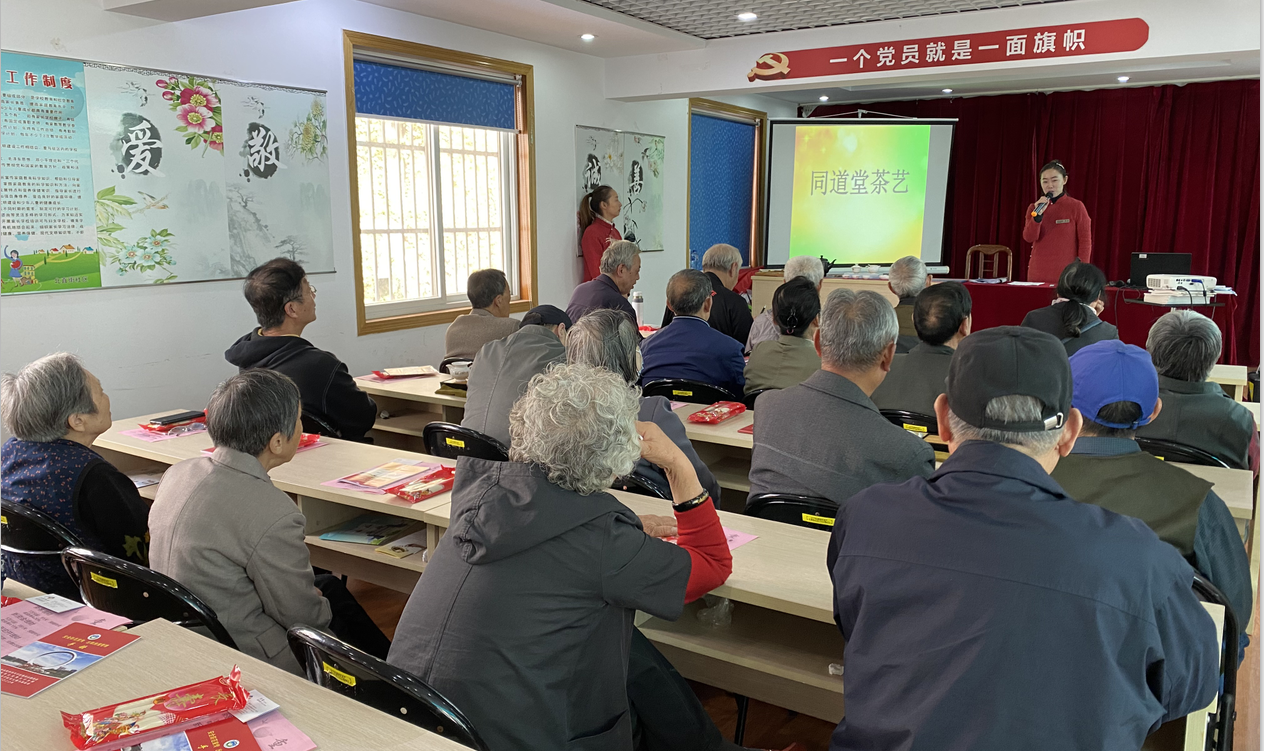 在中国的传统文化中,茶文化历史悠久且文化底蕴深厚。虽然大家对茶文化的知识知之甚少,但有一句话却是深印在大家的脑海中:“开门七件事,柴米油盐酱醋茶。“可见茶与我们的生活息息相关。在日常生活中有客人来访时必泡一壶好茶,以表对客人的诚心欢迎与尊敬。”茶艺师”在我们的字典里是个新鲜的名词,10月20日下午2点北直街社区邀请了同道堂茶艺有限公司举办了茶艺演讲课。