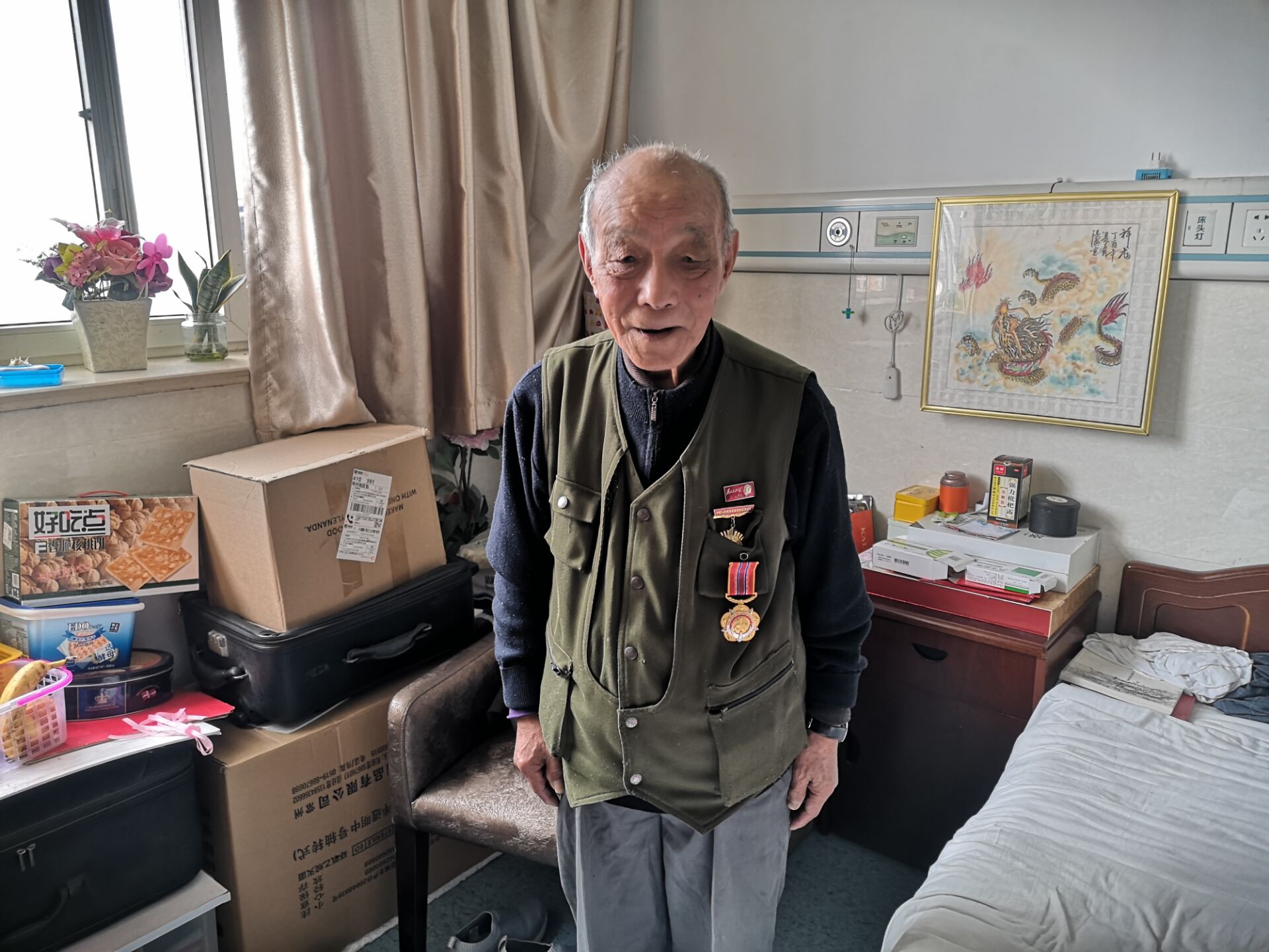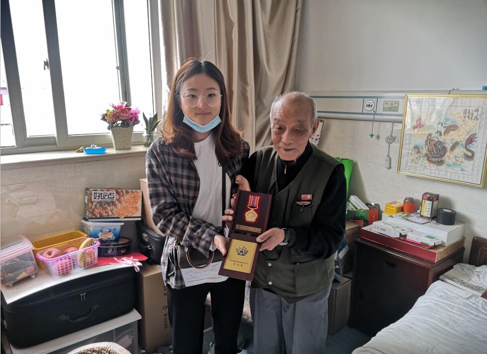 今年是中国人民志愿军抗美援朝出国作战70周年,2020年10月21日,小东门桥社区工作人员走访慰问辖区老战士沈学政,并为其送上抗美援朝70周年纪念章。