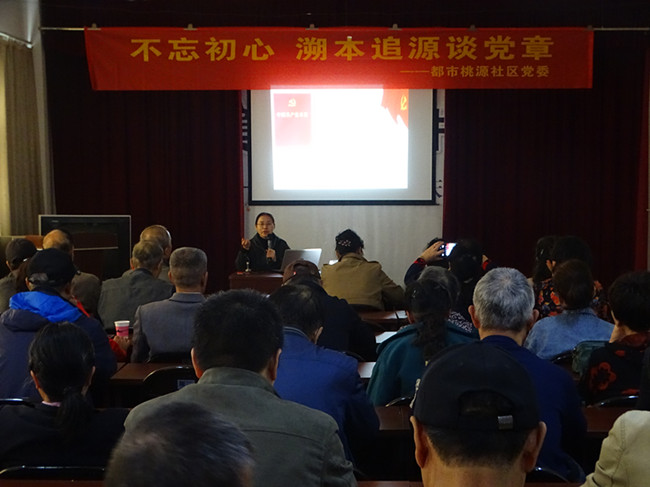为了进一步保持社区党员的党性,加强党员日常学习,10月22日下午,都市桃源社区邀请常州开放大学的常素梅老师为社区党员们上了一堂“不忘初心,溯本追源谈党章”的党课。