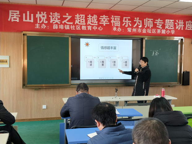 为进一步强化教师的责任感和使命感,提高教师职业的幸福感,12月4日下午,薛埠镇社区教育中心邀请常州开放大学董农美副教授在茅麓小学举办了《超越幸福乐为师》专题讲座,来自全镇中小学教师共60余人参加了本次培训活动。