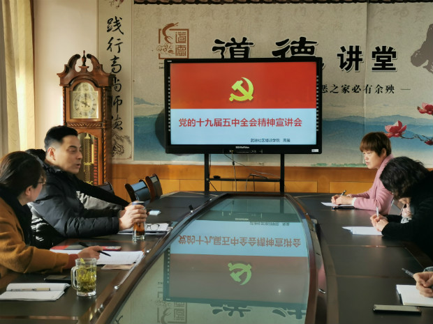 为深入学习贯彻党的十九届五中全会精神,推动兴起学习贯彻党的十九届五中全会精神的高潮,1月20日下午,湖塘成教中心支部书记高曼在学校二楼会议室对全体党员进行集中宣讲活动,引导大家把思想和行动统一到全会精神上来。