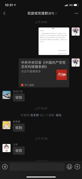 2021年1月26日,凯旋城社区党总支线上组织党员集体学习新修订的《中国共产党党员权利保障条例》。