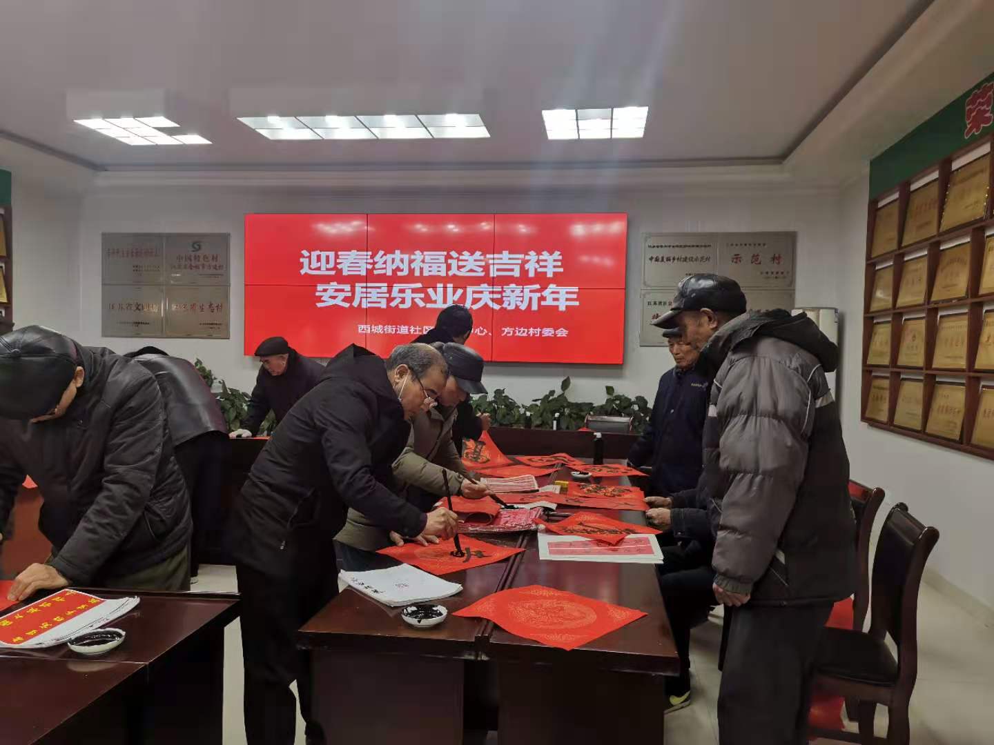 春临大地百花艳,节至人间万象新。贴春联是中国春节习俗之一, 为弘扬中国传统文化,营造欢乐喜庆、文明祥和的节日氛围, 2月3日上午,西城街道社区教育中心组织老年大学书法爱好者到方边村委会开展了“迎春纳福送吉祥 安居乐业庆新年”义写春联活动。