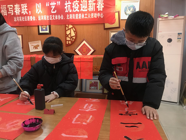 为弘扬传统文化,营造节日氛围,2月2日运河苑社区妇联在社区三楼书法室开展 “迎新纳福写春联、以艺抗疫迎新春”亲子活动,为即将到来的春节增添一些年味,也为响应疫情防控需求选择“就地过节”的人送去温暖。