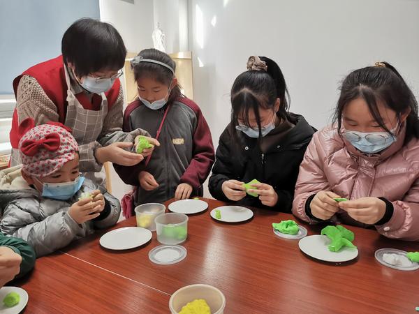 社区工作人员将青少年分成几个小组,讲解了年夜饭的来历和意义,然后教他们认识一些超轻黏土常见的制作方法,同时边制作边讲解,让孩子们进一步的理解。通过悉心教导,孩子们完成了年夜饭的制作,年年有余(鱼)、五谷丰登、财源广进在孩子们的一双双巧手下跃然盘上,迎接美好的一年。