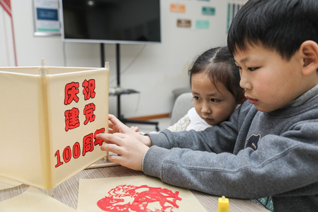 在分享完元宵节的由来后,社工们为每一位青少年分发制作材料。大家迫不及待打开材料包,对照图纸,根据自己的审美进行创作。选材拼装、粘贴花纸……一会儿功夫,一盏盏花灯跃然桌上,生肖花灯寄托了大家的新年愿望,党建元素花灯,表达了青少年对我党的美好祝福!