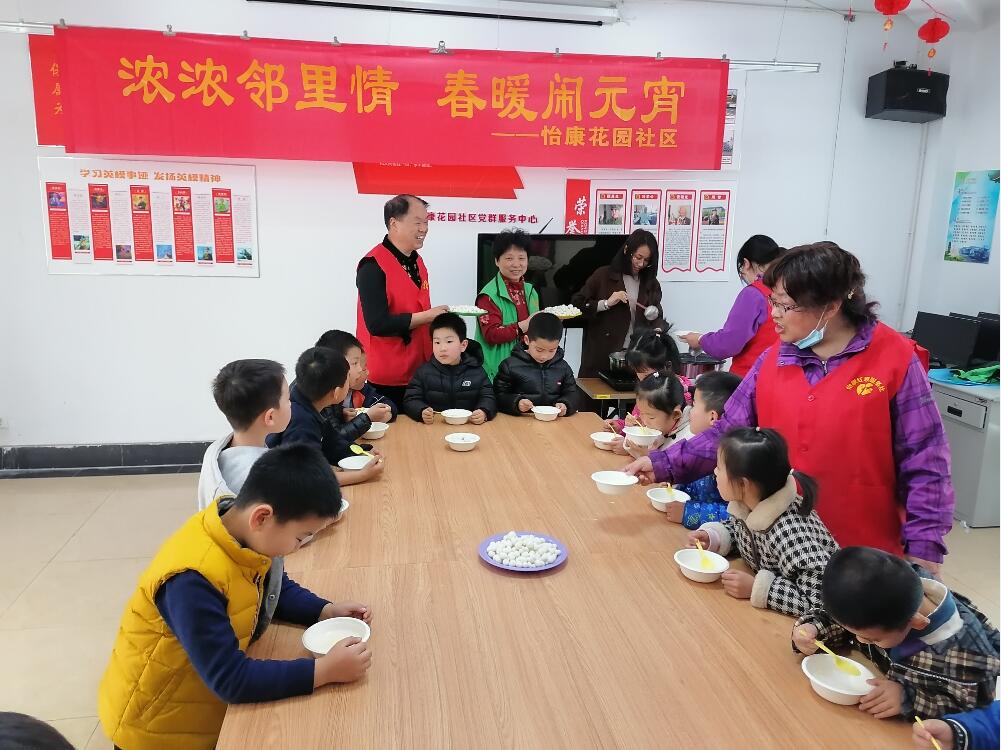 “干阿姨,我们来给你送元宵啦,来陪你一起过元宵节。”年逾古稀的侨眷干阿姨常年独居,儿子定居美国,今年由于疫情,一家人难团圆。怡康花园的社工了解到这一情况,亲手给干阿姨煮了元宵送到她家,虽然儿子不能承欢膝下,但是所有的社工和志愿者都是干阿姨的“朋友”、“孩子”。除了侨眷,还有现役军人家属、孤寡老人和困难人员,怡康花园社区的社工和志愿者们在这团圆的日子里逐个敲开了他们的家门,端上了一碗碗热腾腾的元宵。虽然并不是什么珍馐美味,但其中却满含着怡康人的情谊,“满帘花影月三五,一碗汤圆情万千。”