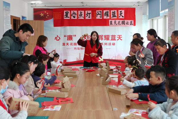 巧手做灯笼、欢乐迎元宵。此次活动,既丰富了居民的精神文化生活,又营造了和谐温馨的社区氛围。(蓝天花园社区 蒋惠兰)