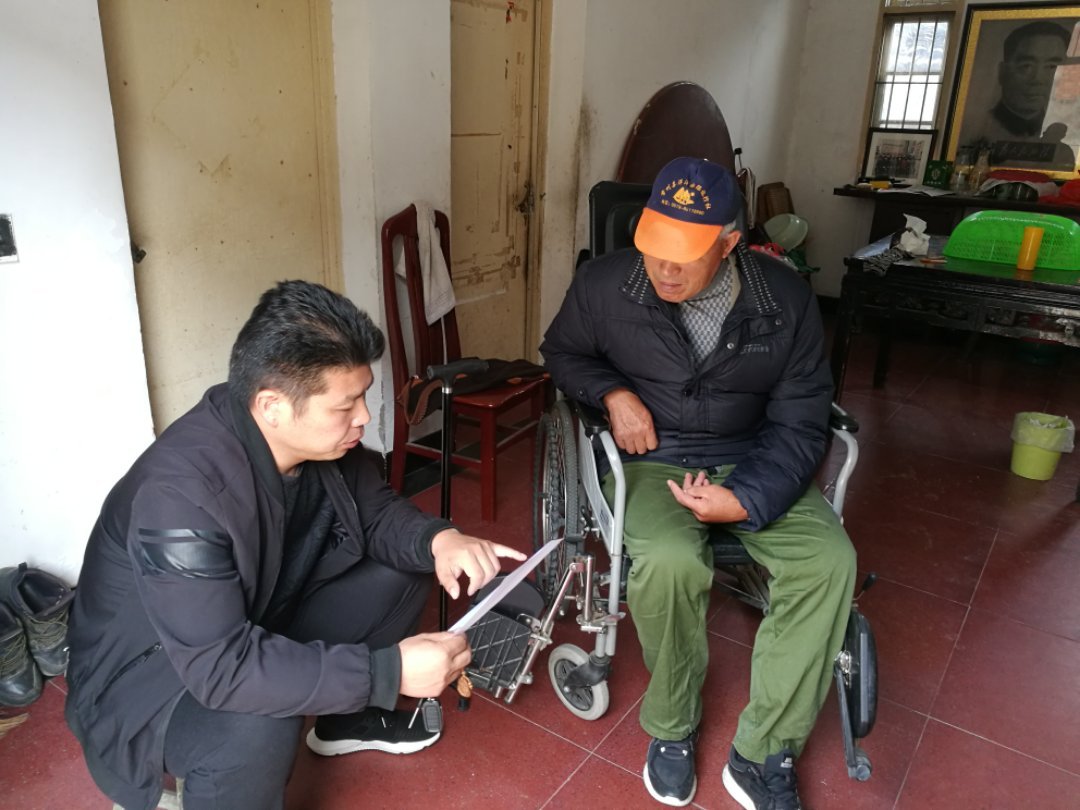 志愿者为行动不便的老党员读文件