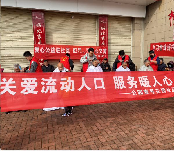 几把椅子、几块围裙,爱心义剪虽简陋,却丝毫不影响理发师的发挥,他们认真地给每一位老人剪发,热情周到的服务,赢得了社区老人的一致赞誉。社区工作者边为爱心义剪活动作好服务,边和学雷锋志愿者拉家常,了解这些外来务工人员的生活状况,并鼓励他们正确对待工作与生活中的困难,时刻保持乐观健康的心态。活动现场,处处充满着祥和温馨的氛围。