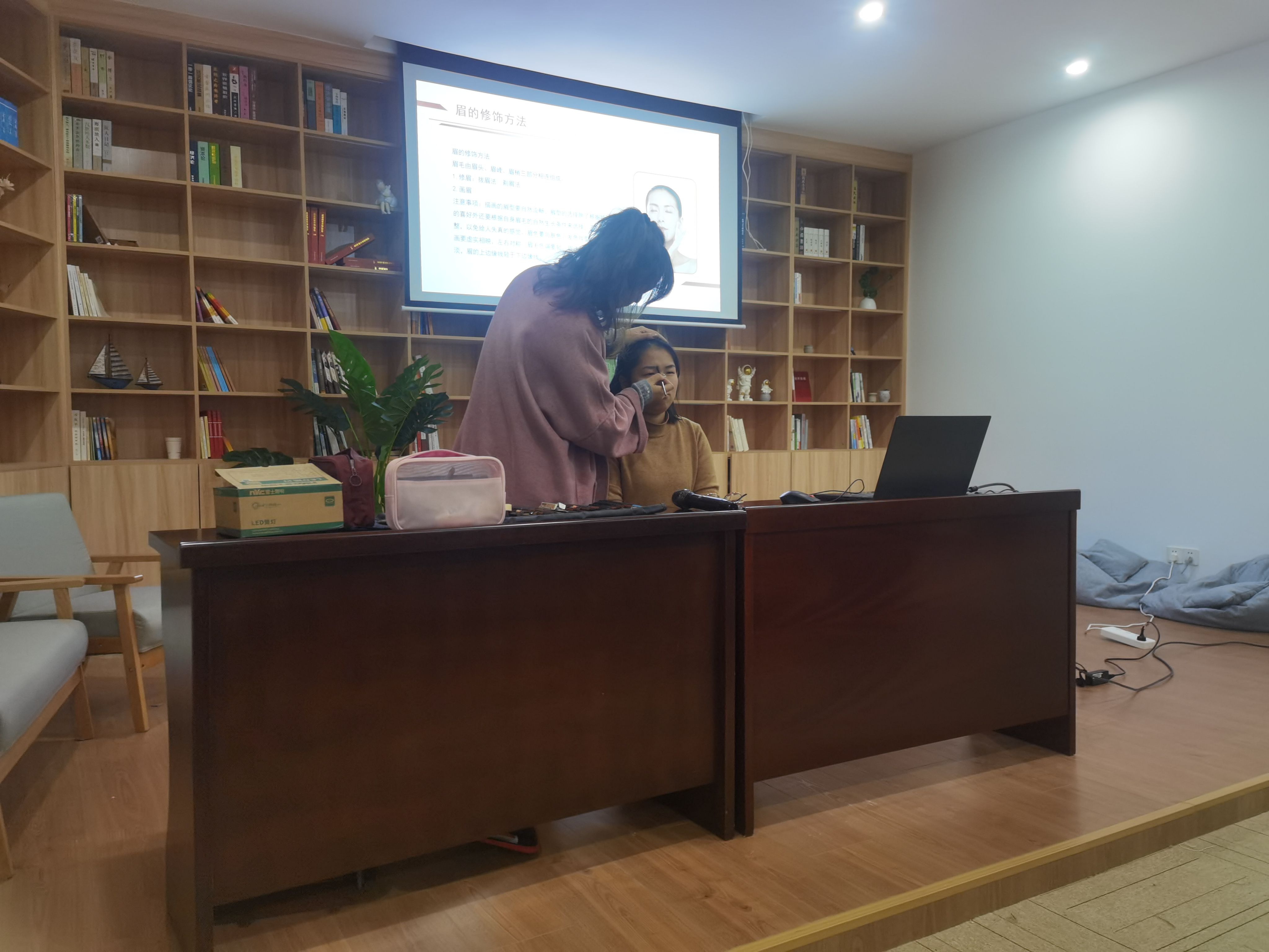 活动邀请专业化妆师作为主讲嘉宾,首先通过PPT,简要介绍了中国女性千年妆容的演变历程,汉朝简洁,魏朝风骨,唐朝惊艳,明朝端庄……在场的学员无不感叹中国历史深厚底蕴;其次阐述了符合当代主流审美的职场妆容,并进行真人教学,根据个人气质,对眉形、唇形、眼影等妆容进行设计。此次培训还贴心设置了互动提问环节,很多女性朋友围着老师咨询各种护肤、彩妆等问题,老师都一一耐心解答,还根据每个学员的个人风格在色彩造型和整体搭配上给出了详细指导。