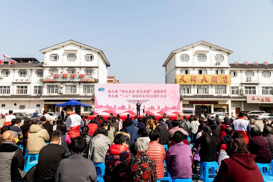 为建立科学、健康、文明的生活方式,充分发挥典型家庭、先进人物在农村精神文明建设中的积极作用,共同倡导移风易俗,破除陈规陋习,争当移风易俗的先锋模范。3月4日,埭头镇开展“移风易俗 我当先锋”道德讲堂暨庆祝“三八”国际妇女节111周年大会。