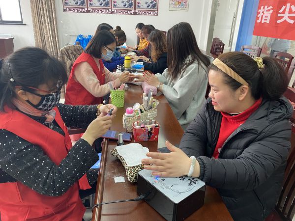 社区工会邀请3位青年美甲志愿者及1为残疾人美甲志愿者为湖港物业、河苑社区等3个单位的20余位女职工做美甲,护手。党建100周年、红五星等美甲图案是女职工的最爱。女职工王佳蓉说:“我是党员我骄傲,我希望用美甲这种形式来庆祝建党100周年,比较符合年轻人的气质。”