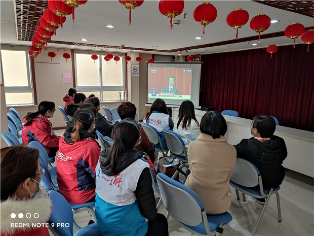 3月5日上午九点,第十三届全国人民代表第四次会议在北京人民大会堂开幕,李克强总理代表国务院向十三届全国人大四次会议作政府工作报告。为更好地让社区居民及时了解“ 两会” 的最新内容,香缇湾花园社区新时代文明实践站组织社区工作人员和社区居民在社区二楼会议室观看直播盛况。李克强总理在政府工作报告中指出,加强和创新社会治理。健全城乡社区治理和服务体系,推进市域社会治理现代化试点。作为社区工作人员,要进一步贯彻落实全国两会精神,建立健全社区治理和和服务体系,更好地为居民群众提供精准化、精细化服务。