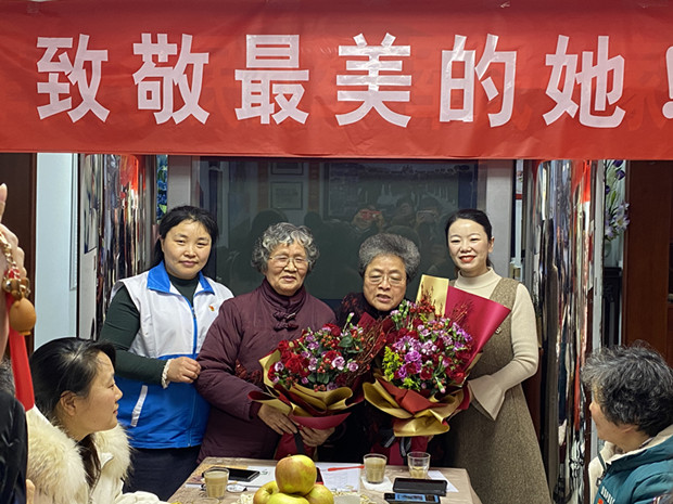 为隆重庆祝“三八”国际妇女节,2021年3月8日上午,在全国拥军模范朱立凤妈妈家中,红梅街道翠南社区组织辖区内的妇女汇聚一堂开展了以“巾帼心向党,奋斗新征程”为主题的三八妇女节活动,社区妇联主席杨静同志主持了本次活动。