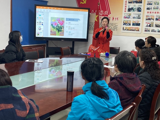 武进区湖塘镇南都社区开展“巾帼花开新时代”丝网花手工制作活动