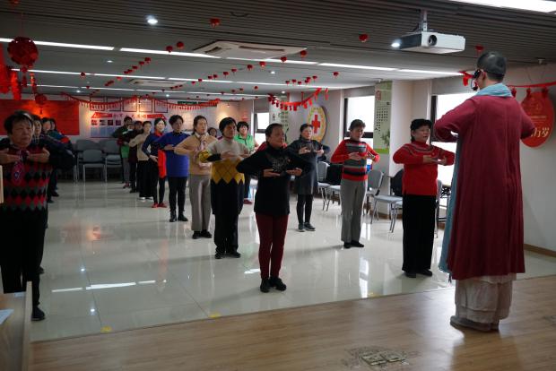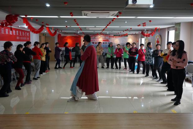 禅舞教师陈俊带领报名的居民一起感受禅舞带来的“静”“柔”“美”。首先,学习禅舞会使人的心境变得开阔、柔软、豁达、澄澈、抛开执念、求得圆满;其次,禅舞使人的心灵得到解放,不被俗世挂碍;最后,禅舞能养身健体,通过运动加快人体新陈代谢,排除杂质,循环人体内的能量,美容养颜。