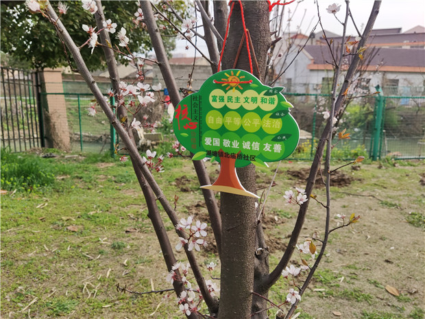参与此次活动的有社区志愿者、党员志愿者、来自纺织学院的教师及学生志愿者四十余人。一行人来到辖区国茂新家园河边空地,志愿者们分组行动,热火朝天地挖坑植树,并给植好的树挂上了表达美好愿景的树牌。北庙桥社区副主任王霞表示,开展植树活动是贯彻落实“五大发展理念”的具体体现,是推进生态文明建设的重要载体。对党建联盟成员纺织学院的教师志愿者来说,植树育人同为百年大计,“园丁”植树,也帮助他们回顾了初心与使命。