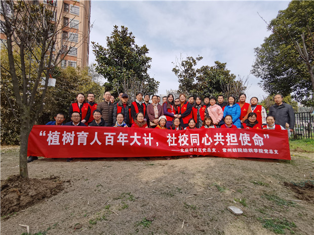 武进区湖塘镇北庙桥社区联合常州纺织学院开展“植树育人百年大计 社校同心共担使命”植树节活动