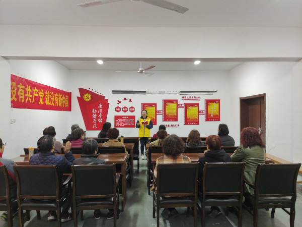 活动中,荆川村委退役服务站工作人员以故事说法、案例释法,并与现场的村民们进行互动,开展了维护婚姻家庭、构建和谐家庭的宣传。