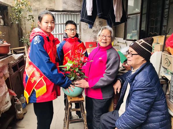 戚墅堰实验小学追光少年们将色泽艳丽的红掌盆栽送到独居、残疾和空巢老人们家中。少年们提前学习了红掌的养护、日常管理、常见病害虫害和解决方案,一一向老人们讲解;为老人捶背捏肩缓解身体不适;为失明老人诵读两会报道。追光少年们的举动让老人们深受感动。空巢老人钱师傅笑容灿烂无比,他说自己满满的幸福感,感谢少年们的关爱,希望少年们传承红色基因,争做时代好少年。(戚墅堰街道戚大街社区 贺晓琳)