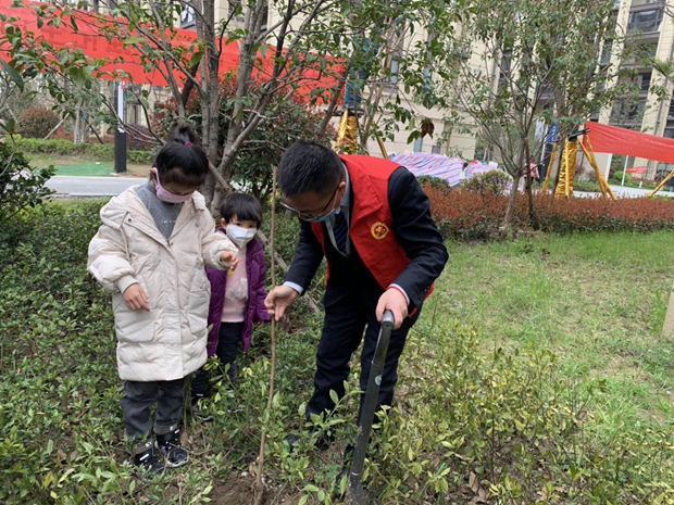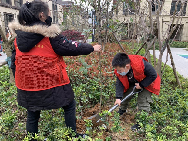武进区湖塘镇长安蒋湾社区开展未成年人爱心植树活动