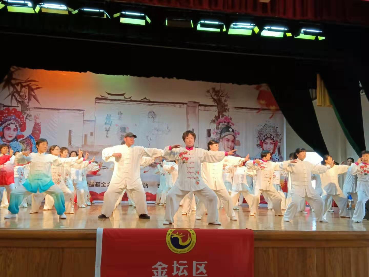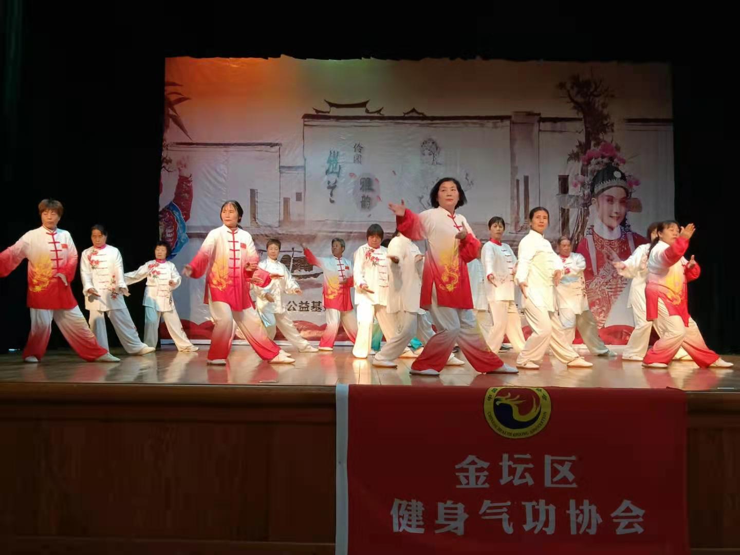 随后,来自金坛城区各健身气功分会的队员们,表演了《八段锦》、《助肺养生功》、《易筋经》、《马王堆导引术》、《三十二式太极拳》等节目,社区教育中心去年组建的水北太极拳队也上台秀了一把《二十四式太极拳》,在武术表演中,还掺插水北坤凤健身队表演的健身操舞,精彩的节目赢得了阵阵的掌声。