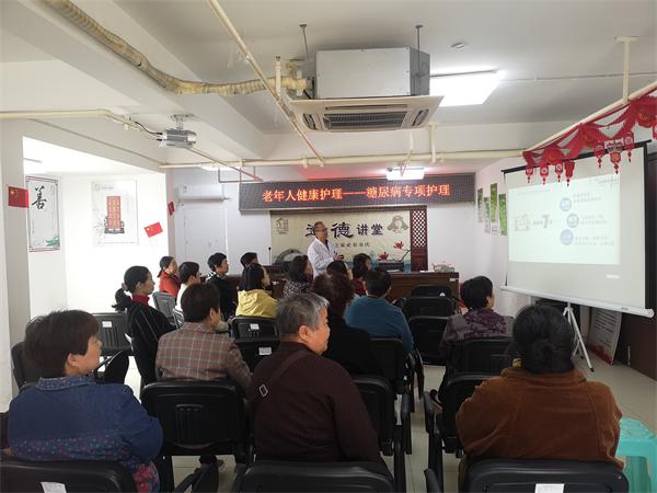 为增强社区居民自我健康状况关注度,提高居民对糖尿病等慢性疾病的认识,让居民了解如何预防或治疗糖尿病,做到早发现、早诊断、早治疗,远离“甜蜜”烦恼,青枫社区新时代文明实践站联合北港街道卫生医院特开设青枫课堂之老年人健康护理课程,邀请全科医生罗主任,在社区三楼会议室开展知识讲座,为居民普及糖尿病养护知识和现场检测。