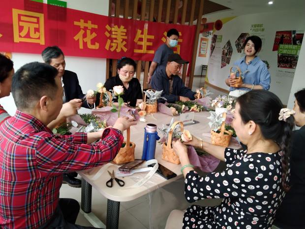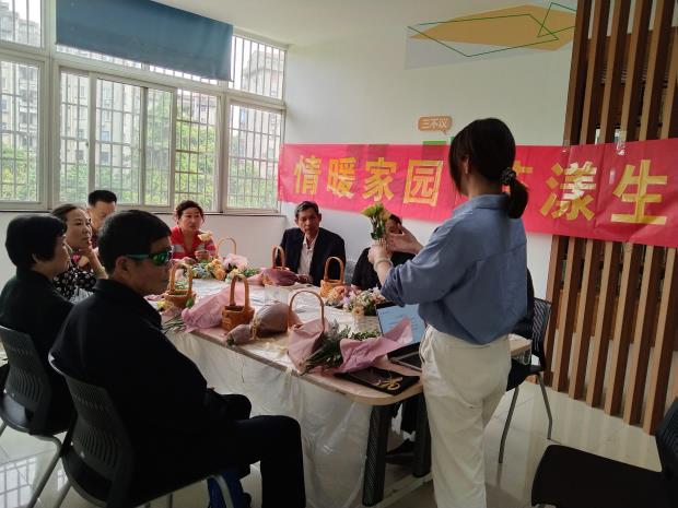 为关爱、丰富计生特殊家庭文化生活, 增加幸福感,积极引导他们融入社会,红梅新村社区于5月8日下午组织辖区计生特殊家庭、志愿者共同开展了“情暖家园 花漾生活”为主题的插花活动,为她们送上一份惊喜、一份安慰、一份快乐,