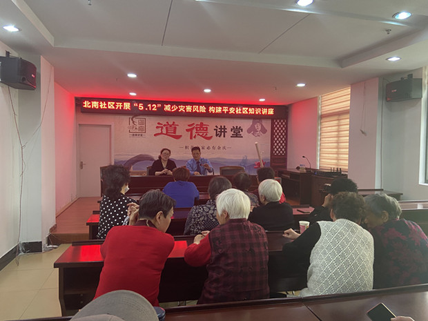 为增强辖区居民防灾减灾能力,增强灾害风险的防范意识,普及防灾减灾的知识,5月8日上午,北南社区组织辖区居民开展“5.12”减少灾害风险构建平安社区知识讲座。