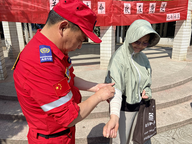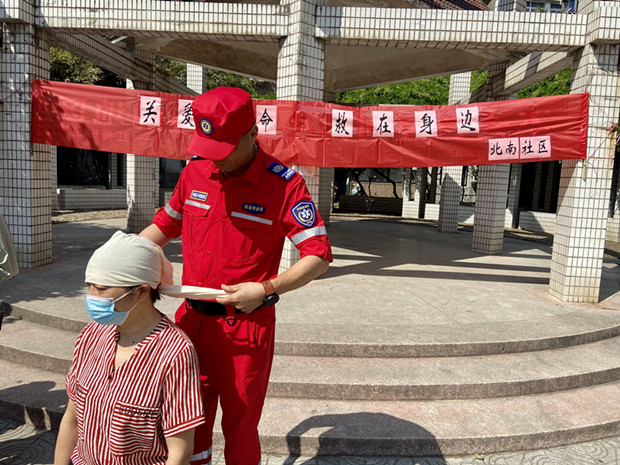 5月10日,北环南村社区邀请应急救护人员区红十字会救护培训师在北环南村广场开展“关爱生命 ‘救’在身边”活动。