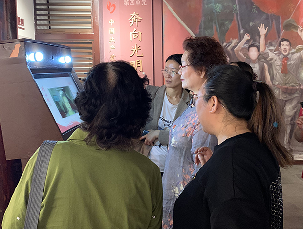 展馆内设置“常州人民欢庆解放”互动大屏,党员们在面部识别装置前进行扫描,通过面部影像信息,将自己融入解放军战士和欢呼的人民群众中,一同欢庆故乡的解放,感受新社会、新生活的到来。运用数字影像,虚拟技术等高科技手段来讲好红色故事,弘扬红色精神,让党员们在现代科技中感受历史气息,激励吾辈砥砺前行。