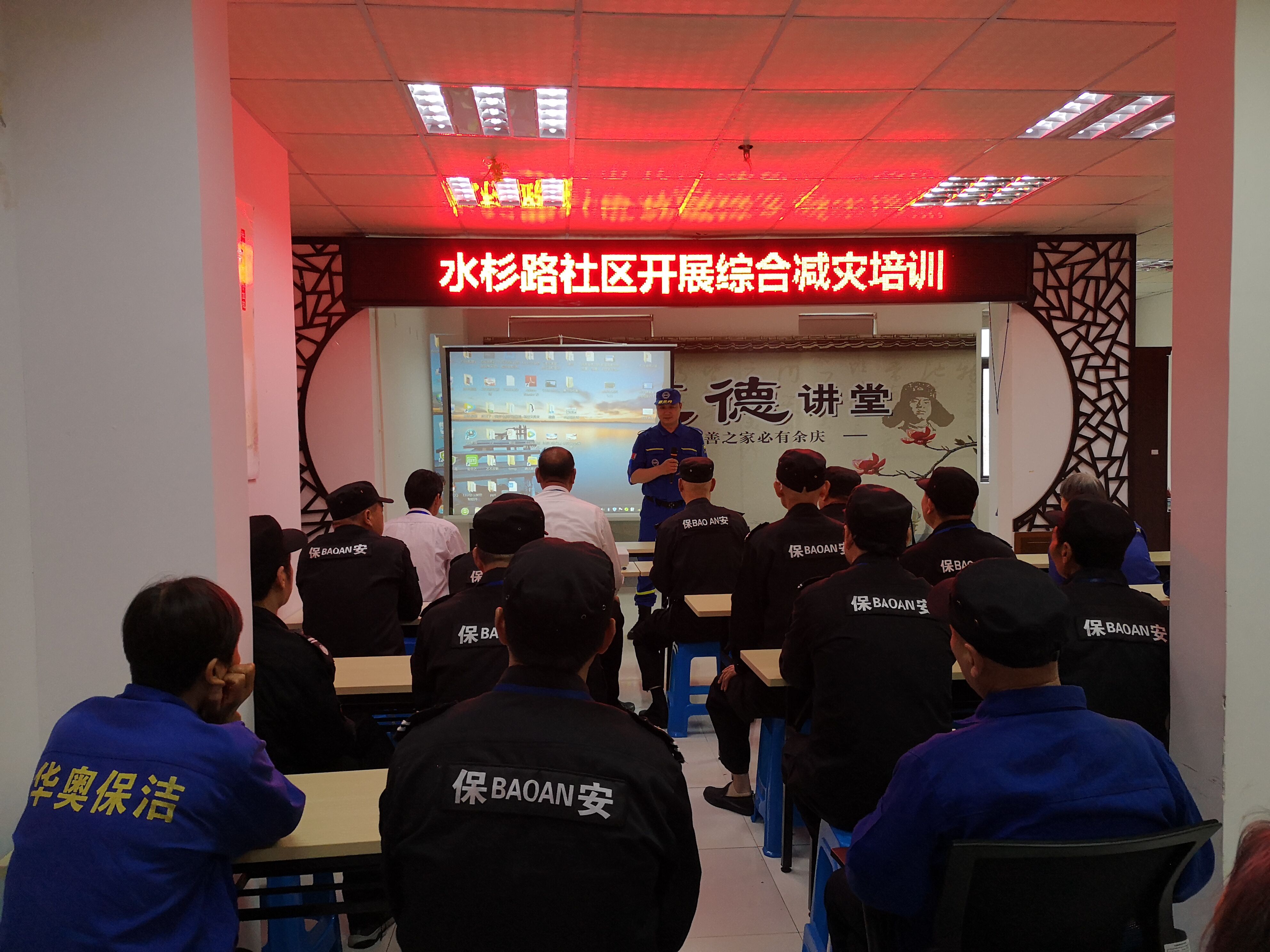 在第13个全国防灾减灾日到来之际,2021年5月12日水杉路社区居民学校组织辖区内物业工作人员、居民代表开展综合减灾培训,以加强大家防灾减灾的意识和提高化解灾害风险能力。