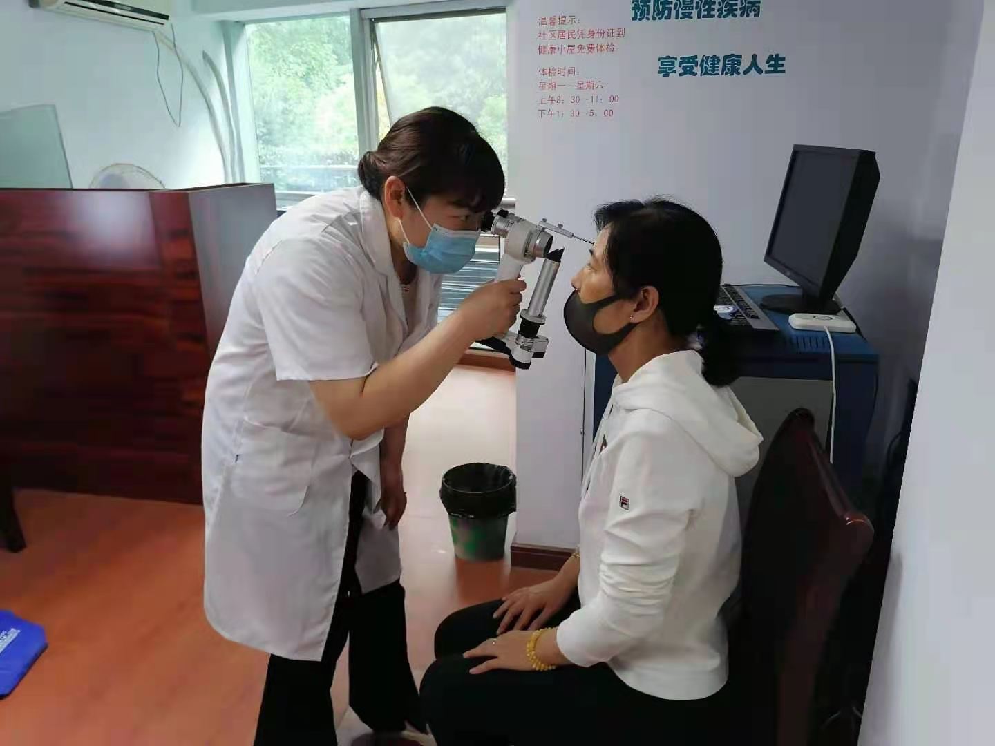 志愿者医生利用专业器械、按顺序为辖区居民测视力、测眼压、筛查有无青光眼及白内障的症状,耐心细致地向每位居民解答疑难,讲解了定期检查眼健康的重要性,并鼓励他们树立积极乐观的生活态度,养成健康的生活习惯。