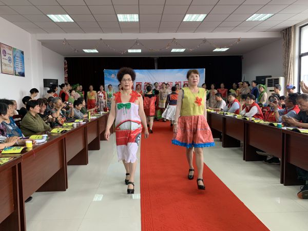 2021年6月4日,一走进河苑社区党群服务中心,瞬间被正在展示的环保服装秀、砖瓦彩绘吸引。砖瓦彩绘从环境保护、青山绿水、党风廉政、生态文明、建党百年等十多个部分展现生态文明建设。正在舞台上走秀环保时装,让你仿佛来到一场高端时装发布会现场。令人难以相信的是,这些精致精美的服装全部由废弃的塑料、横幅、床单等物品做成。