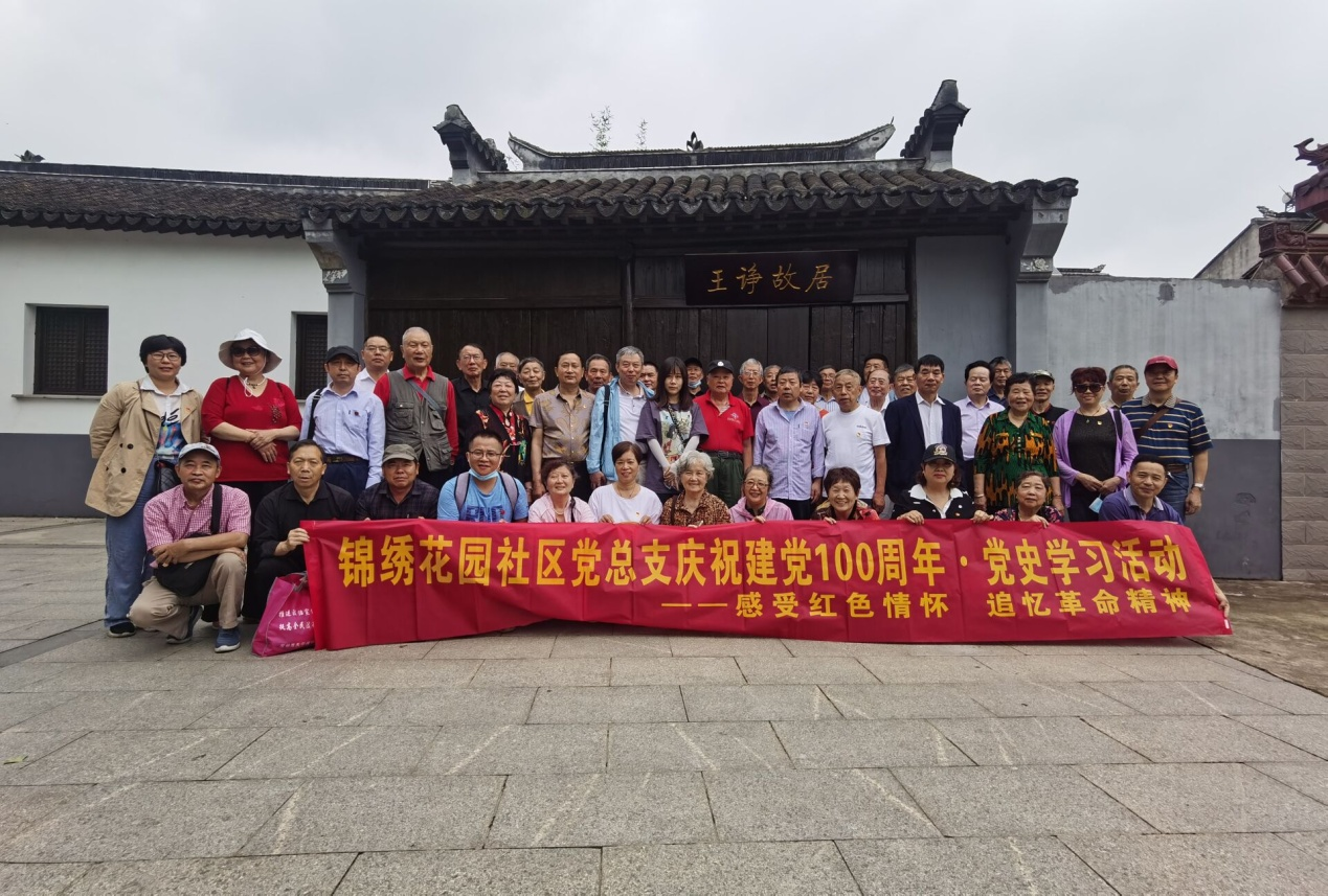 为庆祝中国共产党建党一百周年,回顾党的奋斗历史,展示新时代共产党员的精神风貌和时代风采,进一步增强党组织的凝聚力和战斗力。2021年6月4日,锦绣花园社区党总支组织辖区党员开展“庆祝建党100周年,党史学习教育”。上午8点30分,党员们在社区书记孔琦的带领下准时出发前往王诤故居参观学习。