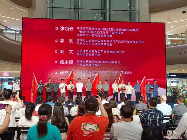 活动中,还开展了潞城街道劳模工匠精神的薪火相传授旗仪式,中车资深技能专家、戚所工匠、戚墅堰所劳动模范、常州市五一劳动奖章获得者张剑云;博瑞电力自动化设备有限公司产品设计党支部副书记、常州市五一劳动奖章获得者李钊;信承瑞技术有限公司事业部副总经理、常州市劳模获得者刘文凯隆电器有限公司装配车间副主任、江苏省劳模获得者葛永根;汇丰船舶附件制造有限公司机加工车间普车班班组长、江苏省劳模获得者孙林乔5名劳模代表对自己的徒弟进行了授旗,通过仪式,去更好地去延续和传承“红色基因”,弘扬劳模工匠精神。