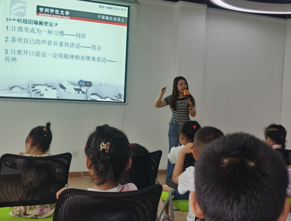 工作室蔡易老师与北港街道枫逸人家20几个小朋友开展“领读少年,益梦之行”系列活动。分别从朗读基本功、朗诵要领、身体副语言等方面和小朋友展开讨论和训练。并对小朋友提出三点要求:1.让微笑称为一种习惯,只要开口说话,则微笑表达;2.喜欢自己的声音并喜欢说话,不要放弃任何一次发言的机会;3.只要开口说话一定用眼神和表情来帮助表达。小朋友在蔡老师的引导下诵读《我骄傲,我是中国人》。