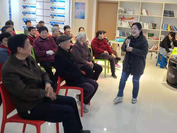 工作室高淑红老师多次走进湖塘镇社区,和居民朋友们探讨古典诗词和新诗、民歌的音韵之美,在教学中引导居民朋友们注意诗词的韵律美,并带领居民有节奏