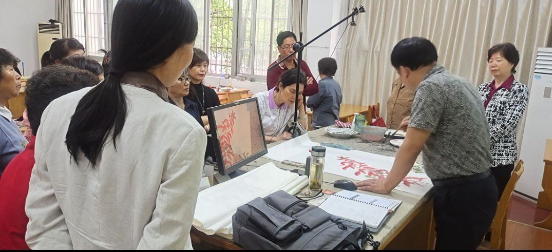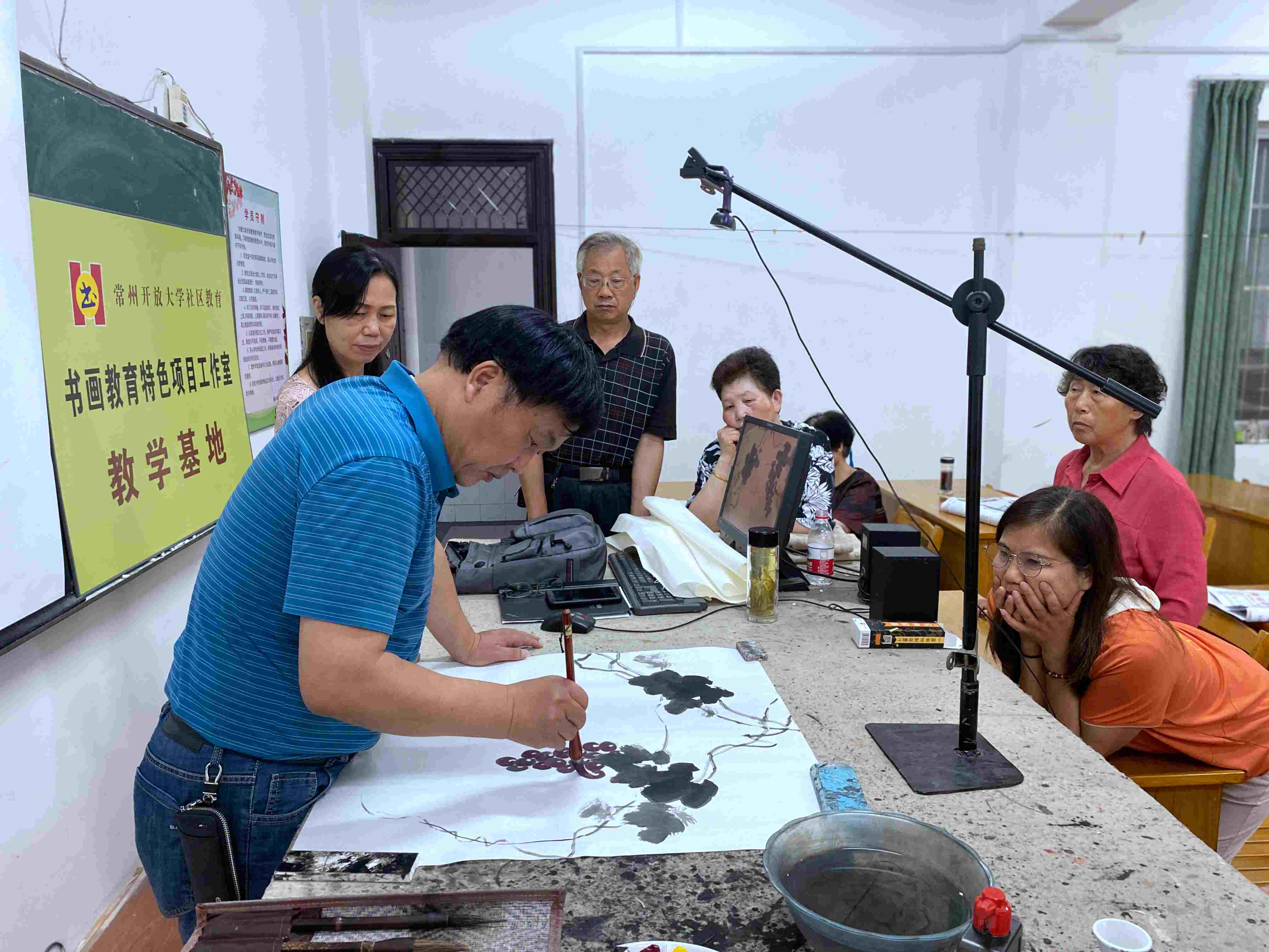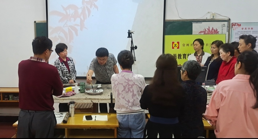 溧阳市老年大学作为常州开放大学社区教育书画教育特色项目工作室的教学基地,书画教育特色项目工作室常年送教书画课程进溧阳市老年大学。根据老同志们的特点开设的“水墨写意花鸟”课程深受学员们的欢迎,教学过程中采取动静结合、理论与实践结合、示范与讲解结合、求知与求乐结合的教学方法,收到了明显效果。学习中大家真诚相处、互相帮助、共同提高。学员的优秀习作,老师及时表扬和展示,让老年人确立自信,有一个充分展示自我的机会,体现了老年人的人生价值,共享晚年的快乐生活。学员们深有体会地说:“最美不过夕阳红,老年大学胜夕阳”,进入老年大学书画课程班学习,人年轻了、身体壮了、活力增加了、知识丰富了、才艺增长了、思想开朗了、心情舒畅了,还能把在老年大学书画课程班上学到的知识和才艺,服务家庭,教育晚辈,奉献社会,这是离退休后的又一大幸福!