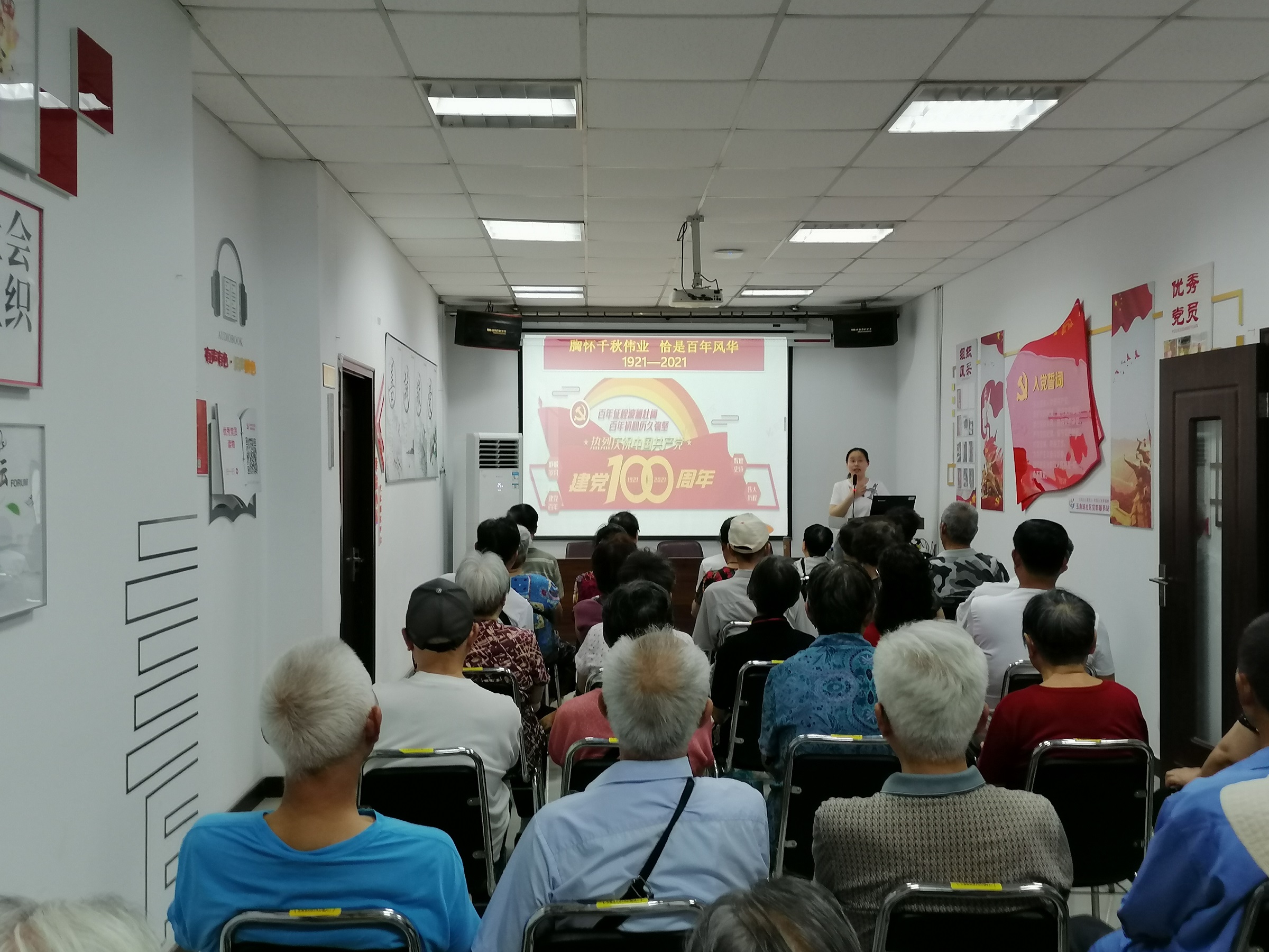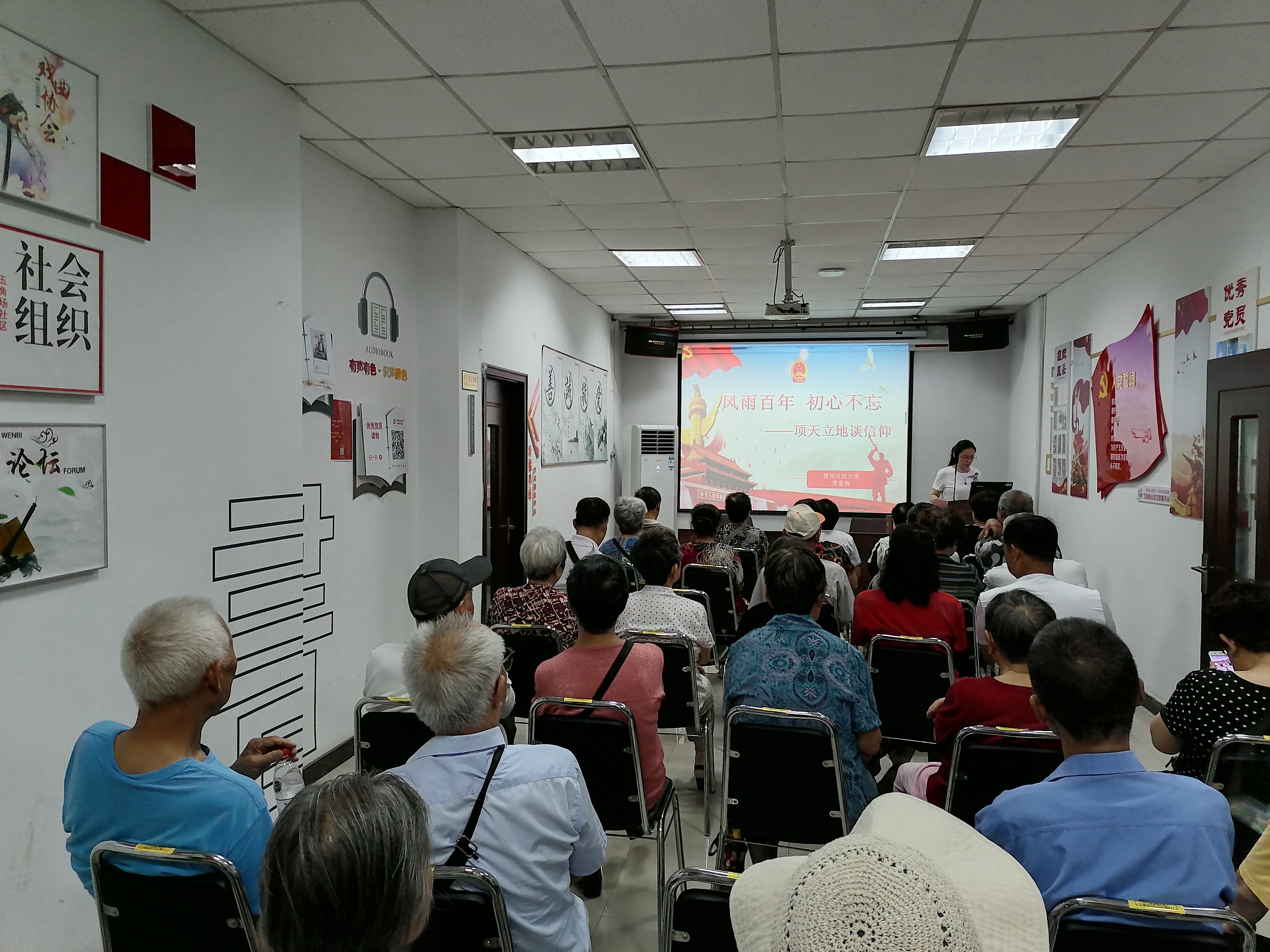在迎接建党100周年到来之际, 2021年6月15日下午2点在社区会议室内,五角场社区特邀常州开放大学常素梅老师为辖区内党员开展以“风雨百年 初心不忘——顶天立地谈信仰”为主题的党史学习专题党课。
