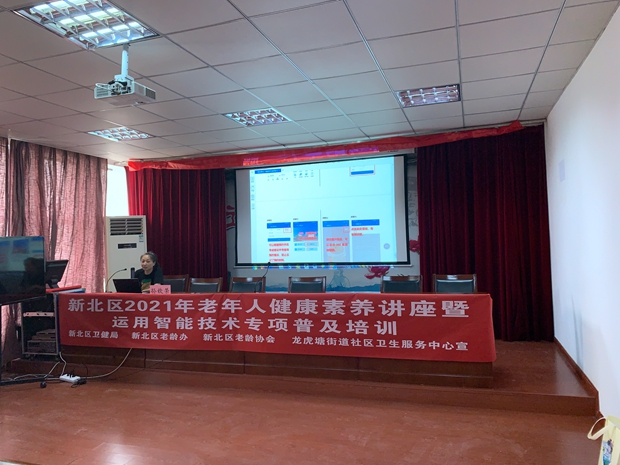 本次讲座为常州市新北区卫健局、新北区老龄办、新北区老龄协会和龙虎塘街道社区卫生服务中心主办的“2021年老年人健康素养讲座暨运用智能技术普及培训”系列活动之一,旨在落实江苏省政府办公厅4月印发《江苏省切实解决老年人运用智能技术困难重点任务清单》。5月,孙老师专门参加了由江南大学教育部高等学校继续教育示范基地承办的江苏省“智慧助老”骨干师资培训,为这场专项培训活动奠定了思想基础。