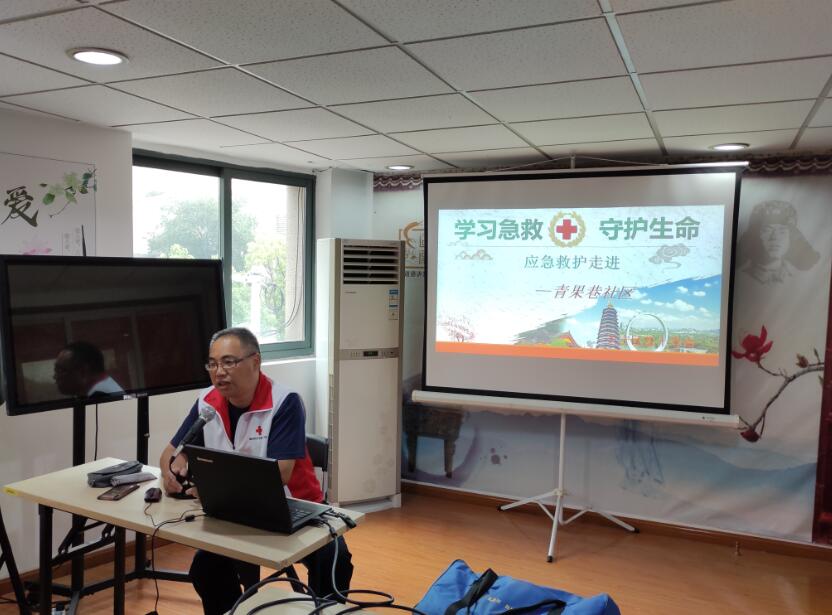 为普及急救知识,提高辖区居民应急救护能力,6月17日下午,青果巷社区邀请天宁区红十字会蓝天救援队陆子平老师来社区开展应急救护知识培训,向辖区居民传授心肺复苏的基本知识及具体的操作方法。