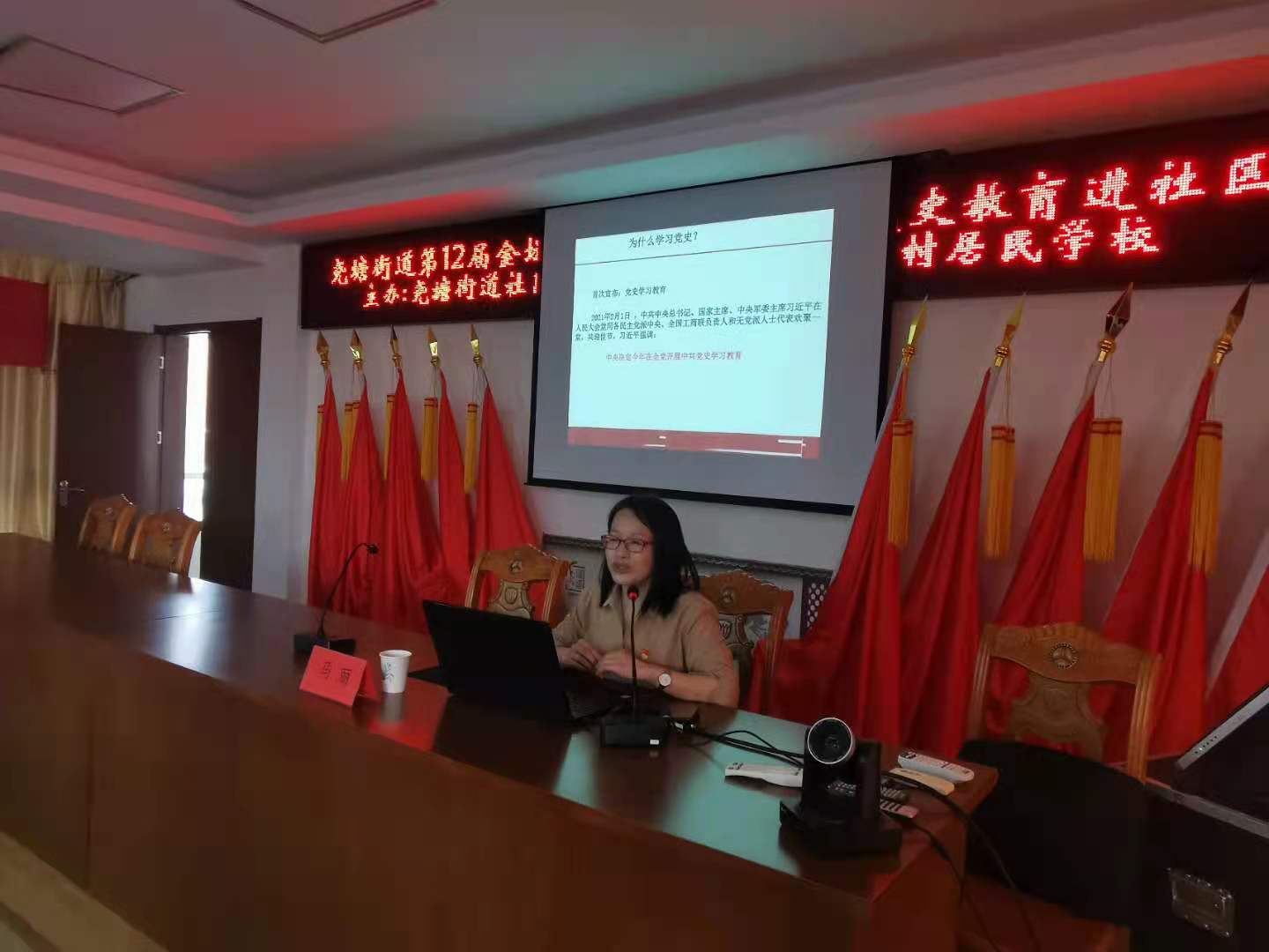 这次活动,社区教育中心仍然邀请了区委党校高级讲师、教育科副科长马丽老师作了题为《学习百年党史,汲取前行力量》的专题讲座。马老师从新民主主义革命宝贵经验、社会主义革命和建设时期的曲折探索、改革开放进程中的成就及经验三个方面生动描述了中国共产党的百年历程和伟大成就,并对怎样开展学习党史作了明确的要求。