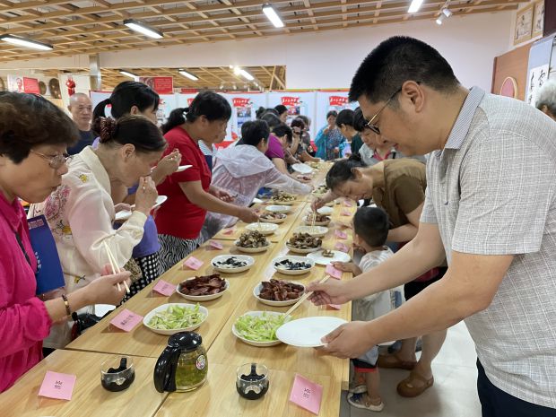 猜菜名品廉味:活动现场,居民们带来了自制的24道廉政菜肴,主持人给大家出了个难题——看菜猜名。在场居民跃跃欲试,“这盘清炒莲藕,应该是‘冰清玉洁’吧,寓意出淤泥而不染”、“这个小葱拌豆腐,是‘一清二白’,寓意做人要清白”……一盘半鸭,难住了大家,主持人借此讲述了半鸭知县的故事,提醒大家要从政清廉,为民办实事。猜完菜名,在场居民共品舌尖上的“廉味”。