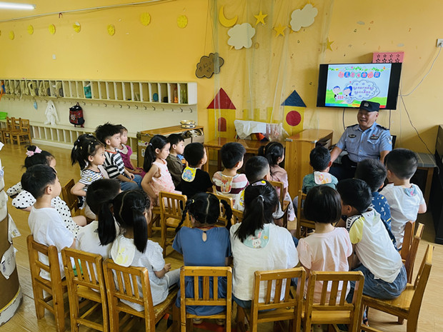 活动中,民警通过图片、视频的形式,给幼儿园的小朋友告知吃东西要在正规的商店购买,“不吃路边摊”、“我不挑食”等主题安全教育,使孩子接受安全教育的熏陶,掌握了必要的安全行为知识。