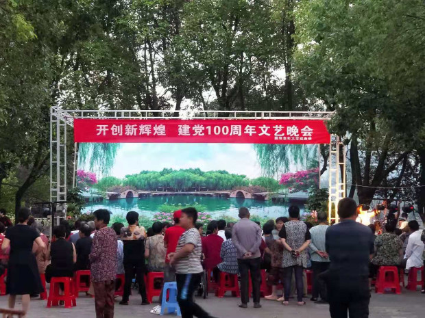 6月25日,薛埠镇仙湖公园内欢声笑语,歌声震天,全镇600余人社区居民来到这里共同庆祝我们伟大的中国共产党成立100周年,薛埠镇社区教育中心、老年大学等相关负责人参加了本次活动。